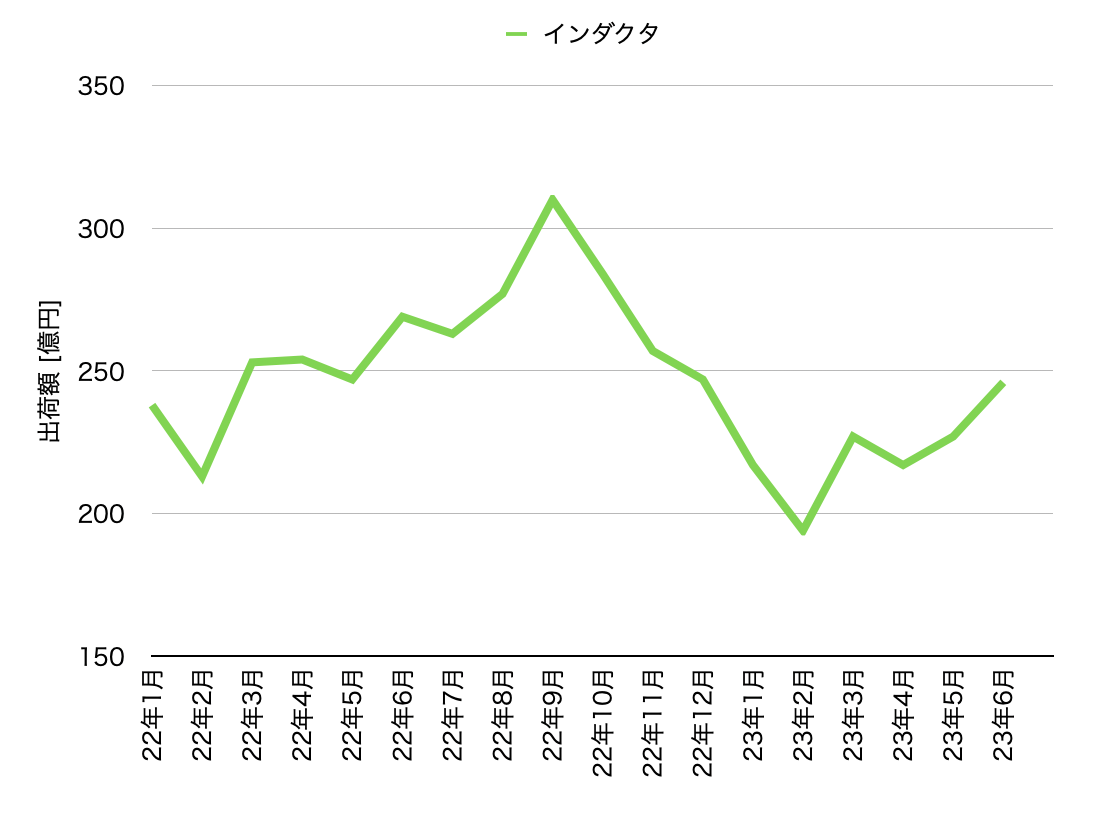 SOX指数は8月-4.94%でした。8月は弱いという季節性があらわれたように思います。例年9月も弱いイメージがありますが、今年はどうなるでしょうか?9月の利上げはスキップとの見方が強いので、金利とハイテク株価の関係を考えるとSOX指数は例年よりは強めになるかもしれません。半導体市況回復の兆しが見えれば良いのですが、9/28(木) 5:00のマイクロン ・テクノロジー決算でのガイダンスや市況コメントが気になります。なお電子部品出荷額はジワジワ上がっているようです。